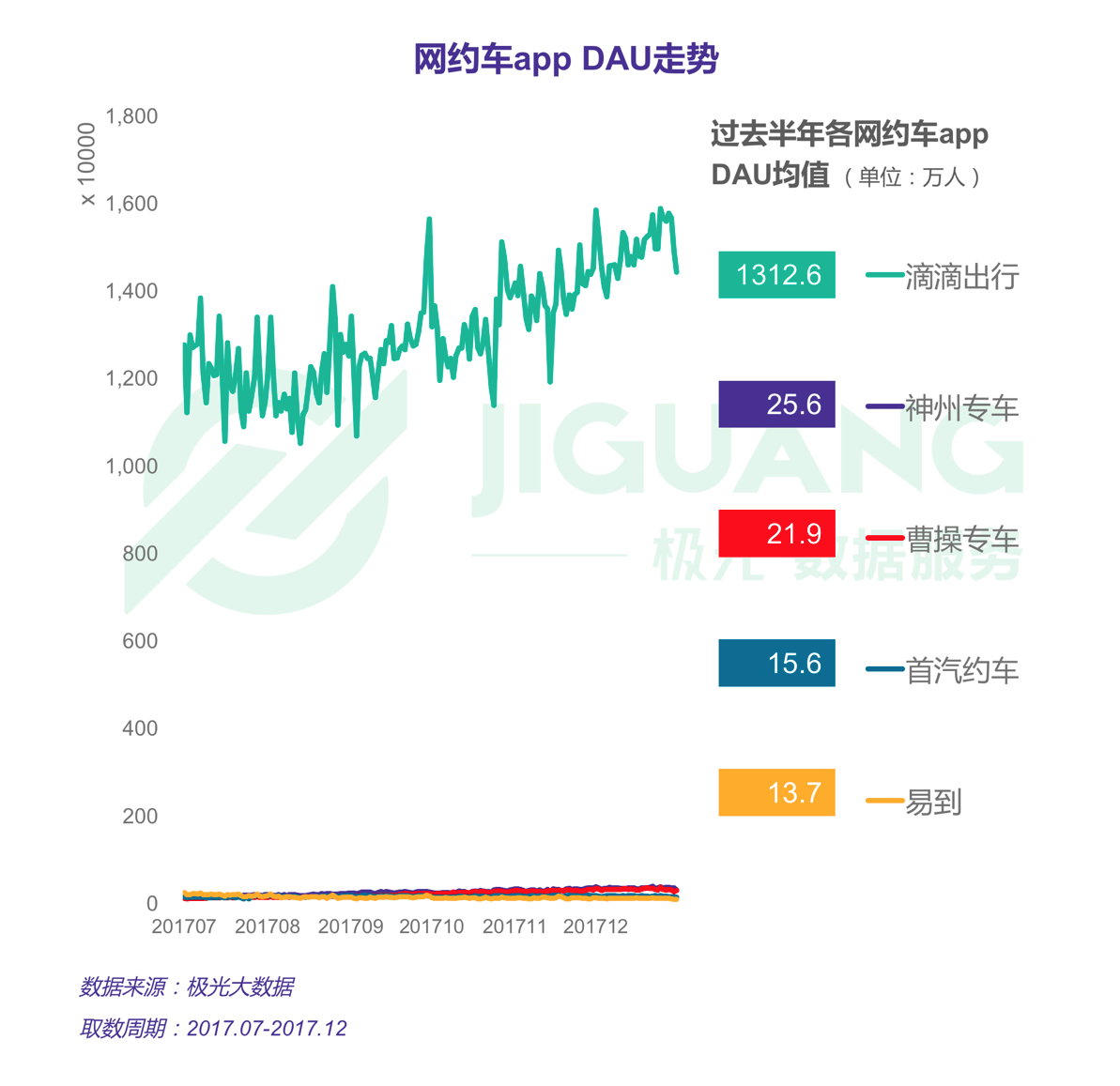 到2017年12月最终一周,网约车app商场浸透率为14.0%,商场规划超越1.4亿人,曩昔一年职业全体处于在细微的动摇中上升的状况,与2016年同期相比,全职业的用户规划增加了16.4%